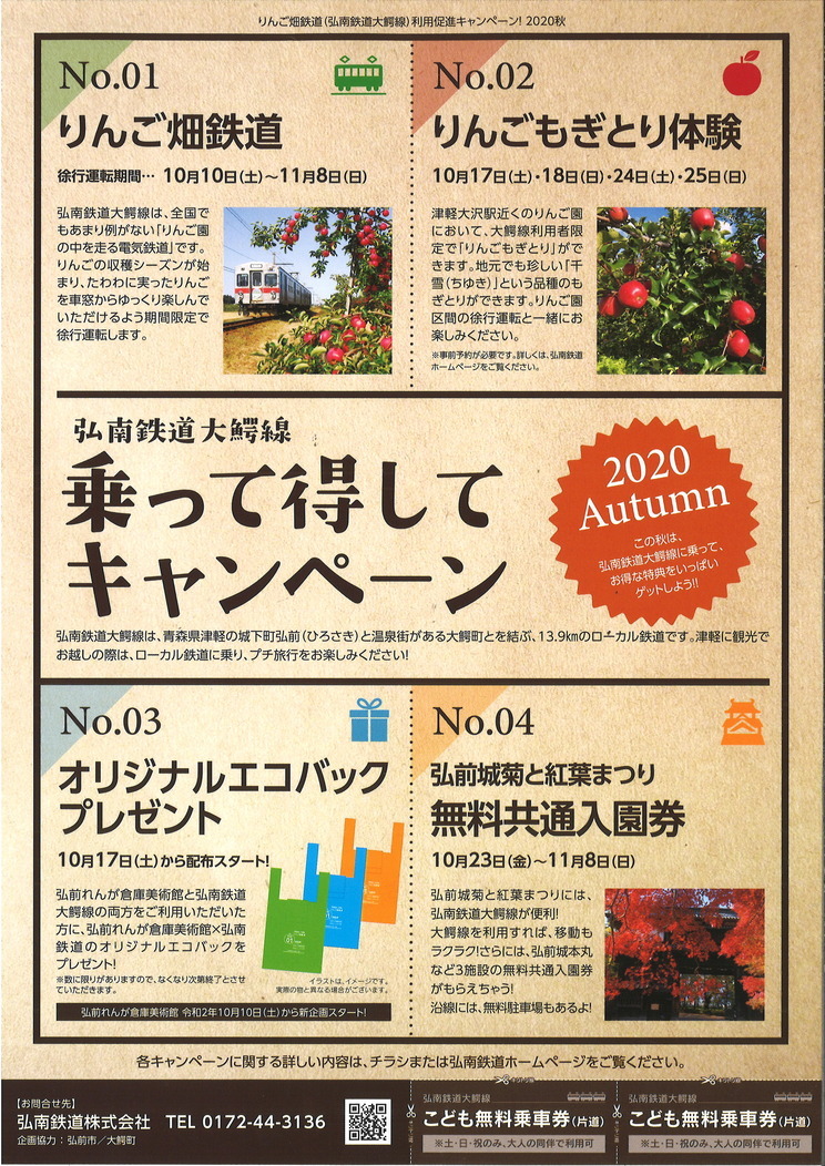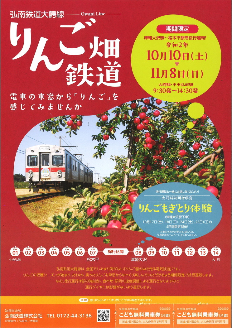 この秋は、ぜひ、りんご畑鉄道(大鰐線)へ乗車し、お出かけをお楽しみください!