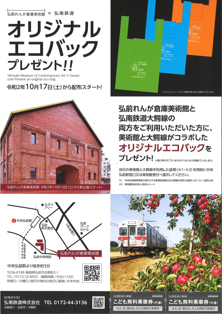 弘前れんが倉庫美術館・弘南鉄道コラボ エコバック プレゼント |