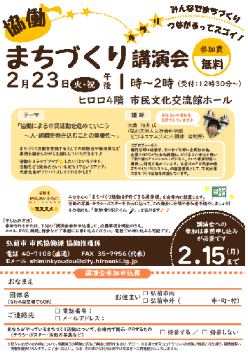 協働♪まちづくり講演会♪ チラシのダウンロードPDFファイル(436KB)このリンクは別ウィンドウで開きます