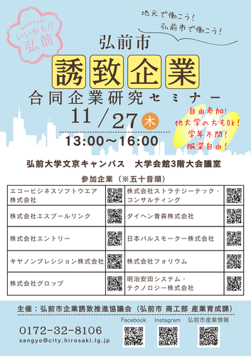 新規大学卒業予定者等へ弘前市誘致企業10社の業務内容など、お仕事の魅力を発信するイベントを開催します。