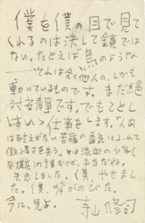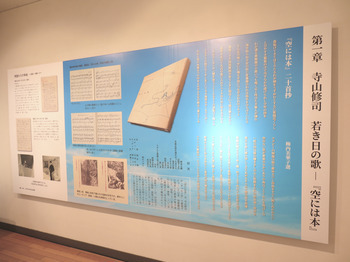 『空には本』に収められた短歌の大半は、昭和30年から約3年半にわたる闘病生活の中で詠まれた。その間の事情を伝えるのが、寺山が青森県三沢市在住の「恩師」中野トクに宛てた書簡である。このハガキには次のような一節がある。『まだ絶対安静です。(中略)「人間は耐えがたい苦痛の香気にふれて傲慢さを失う」とは混血の少年〈風媒花〉の言葉だけど、本当だね』。 〈三沢市寺山修司記念館蔵〉