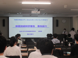 「メディカルスタッフについて学ぼう」は、中学生が将来の夢に向かって主体的な選択ができるように支援するとともに、看護師や放射線技師などの医療職に対する理解を深めてもらうことを目的として、弘前大学大学院保健学研究科、弘前大学医学部保健学科及び心理支援科学科と弘前市教育委員会が連携し開催します。