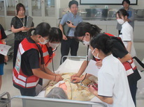 人形を使って呼吸を助ける気管挿管を体験