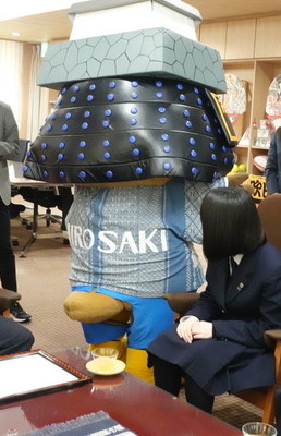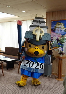 令和7年2月12日、たか丸くんのユニフォームを製作いただいた青森県立弘前実業高等学校関係者の皆様が完成報告とお披露目をかねて櫻田宏会長(弘前市長)を訪問しました。
