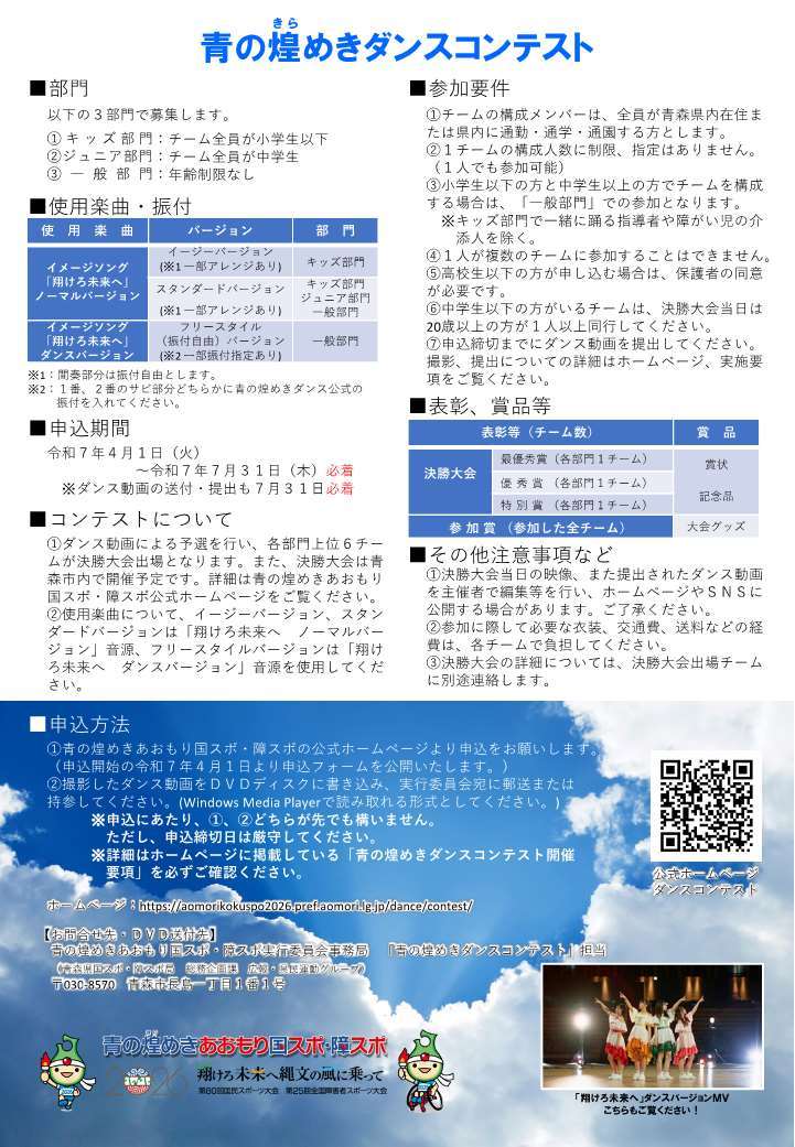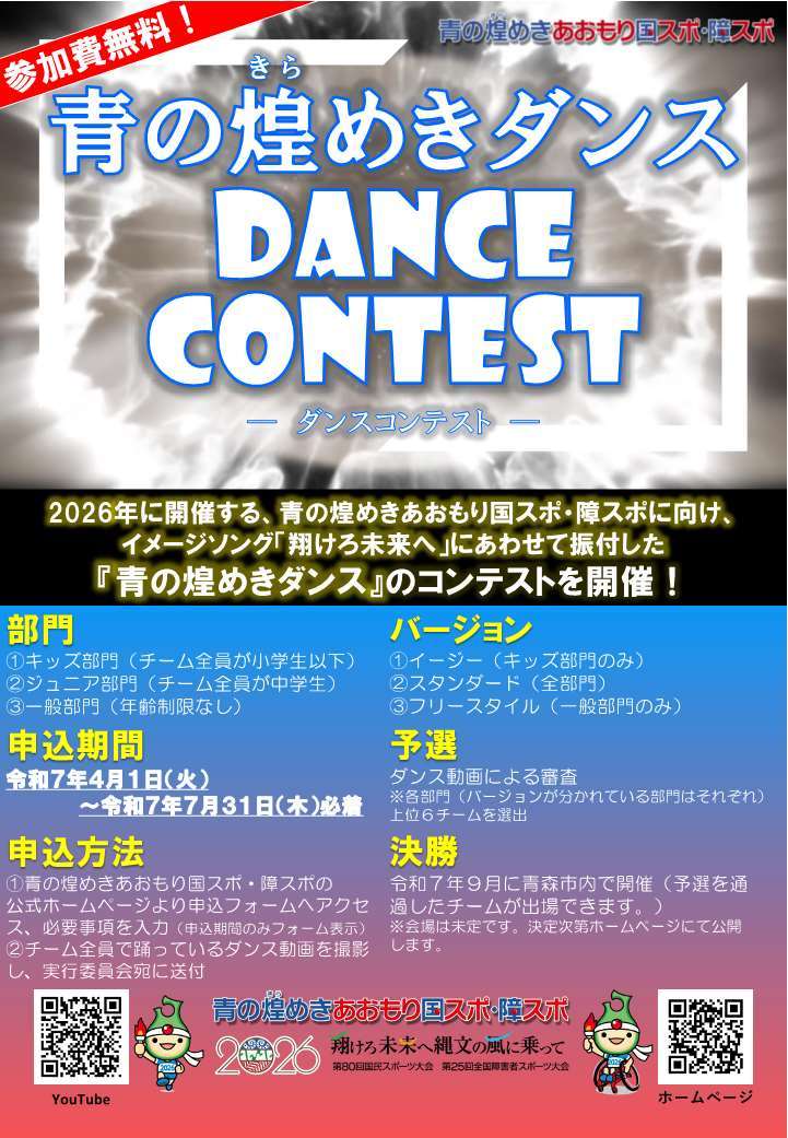 2026年に開催する、青の煌めきあおもり国スポ・障スポに向け、イメージソング「翔けろ未来へ」にあわせて振付した『青の煌めきダンス』のコンテストが開催されます。