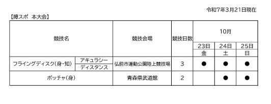 青の煌めきあおもり障スポ(第25回全国障害者スポーツ大会)本大会競技会会期(96KB)