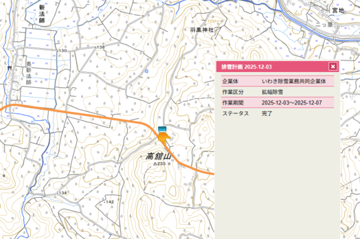 令和7年度より、公開内容を拡充し、除雪を担当する除雪業者の情報や、拡幅・排雪の予定と実績が確認できるようになりました。