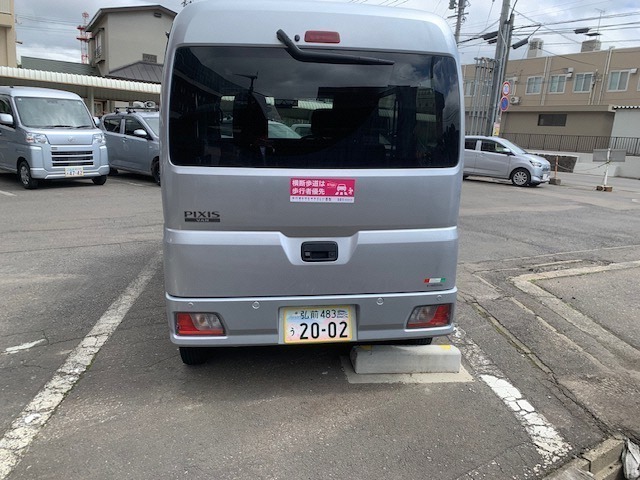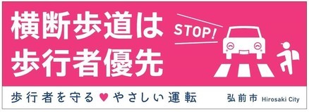 製作したシートは弘前市の公用車に掲示するとともに、弘前市交通安全対策連絡会の団体に配布し、横断歩道歩行者優先を促す啓発活動に活用しています。
