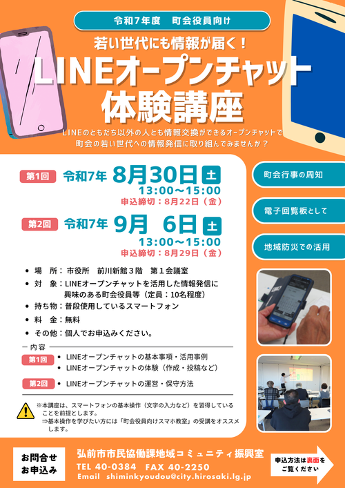 LINEオープンチャットを活用した情報発信に興味がある町会役員等(定員:10名程度)※先着順