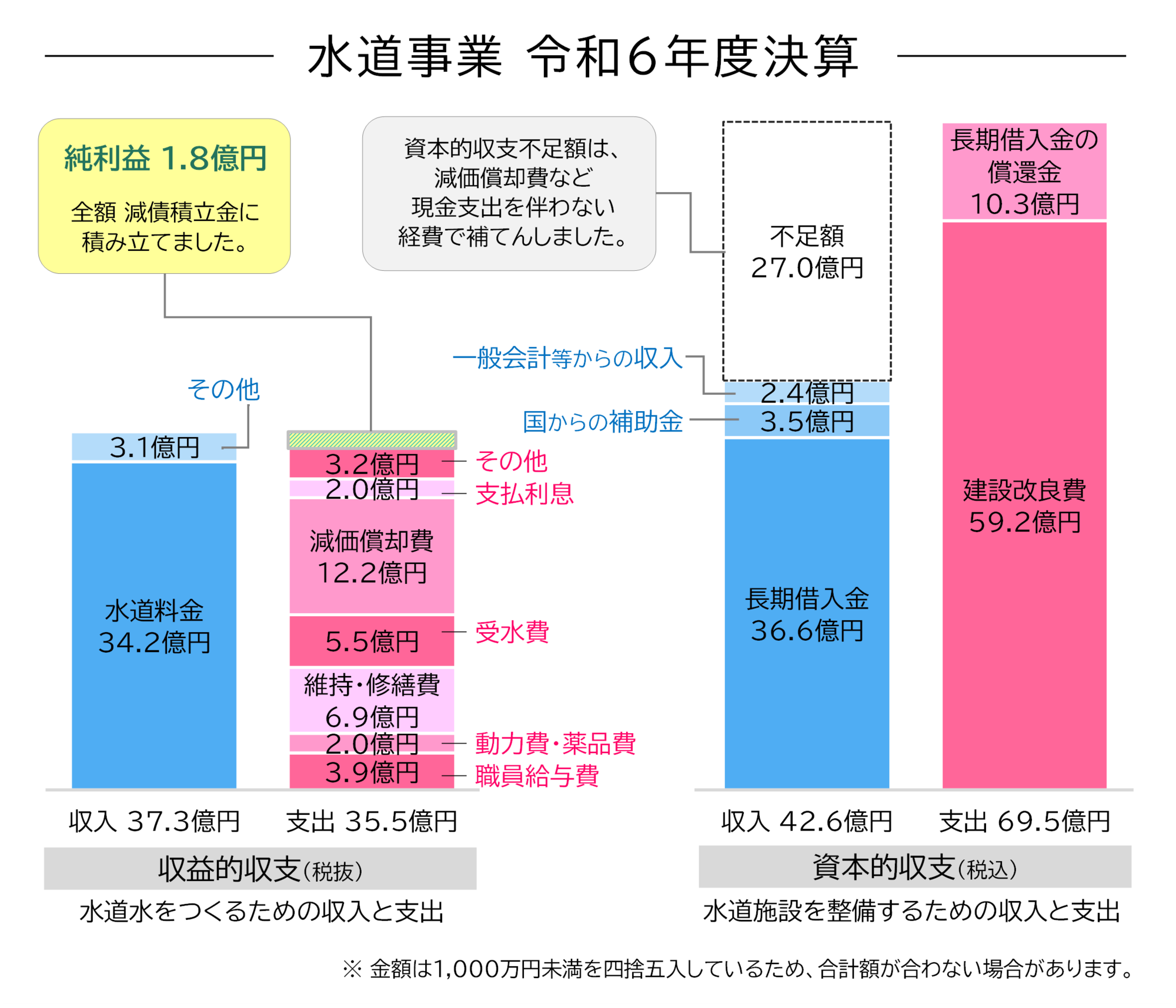 水道事業・下水道事業の令和6年度決算の概要は以下のとおりです。