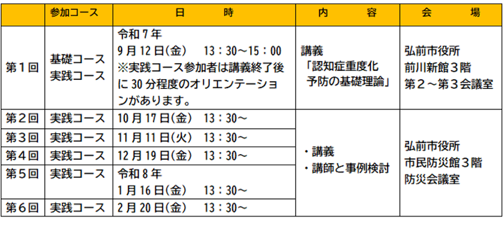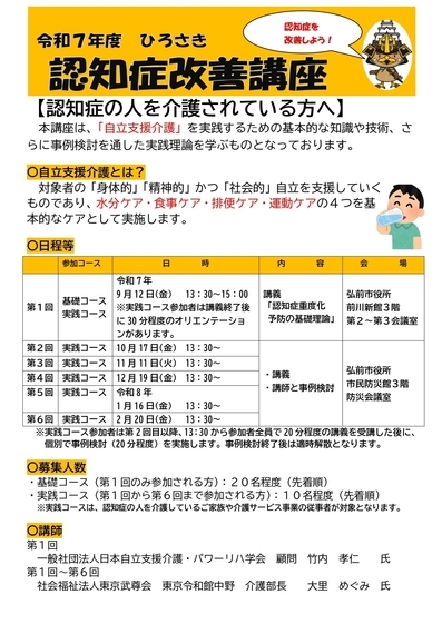令和7年度(第11期生)ひろさき認知症改善講座の参加者を募集しています。