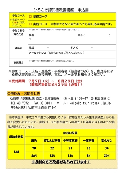 ひろさき認知症改善講座~申込書~