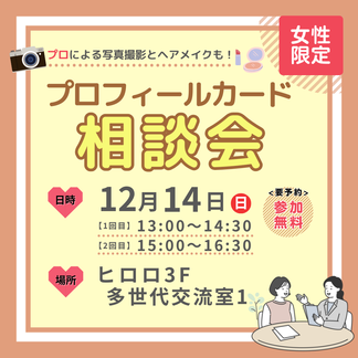 12月14日(日)に下記のとおり、女性限定のプロフィールカード相談会を開催します。
