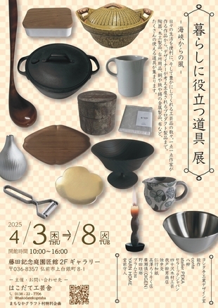 藤田記念庭園匠館では4月3日~8日に、はこだて工芸舎 海峡からの風「暮らしに役立つ道具展」が開催されます。