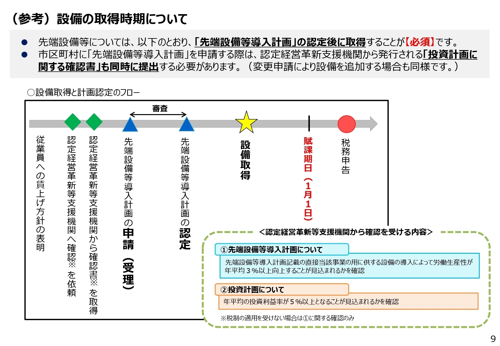 ※令和5年度税制以前の制度で賃上げ表明をせずに認定を受けている事業者等が、令和7年度以降に設備を追加する場合は、賃上げ表明等令和7年度税制の要件を満たしたうえで新規申請を行ってください。
