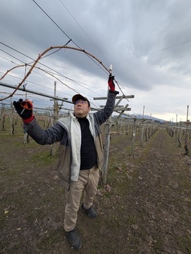 着任後、地域でワイン用ぶどう栽培を行っている生産者の方の園地にお伺いし、実際の作業を行いながらぶどうの栽培について学んでいます。