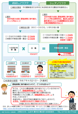 ※生活困窮者等の直接雇用 生活困窮者等(「ひろさき生活・仕事応援センター」の支援を受けているもの)を直接雇用し農作業に従事させる事業