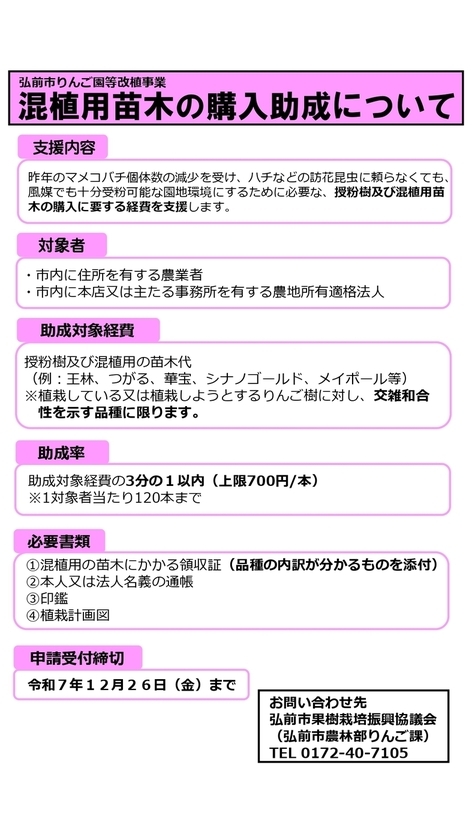 りんご課生産振興係(市役所本館3階)☎0172-40-7105