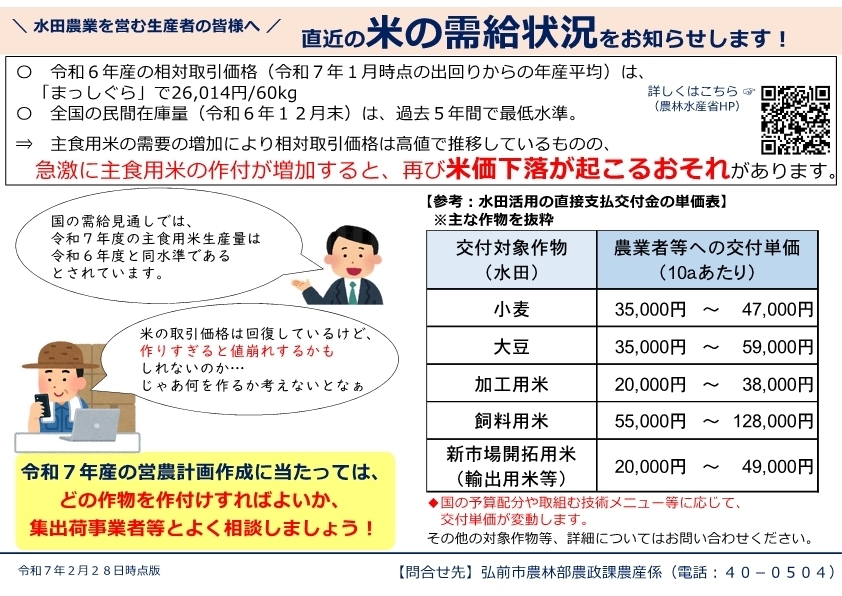 市では、直近の米の需給状況についてお知らせしています。