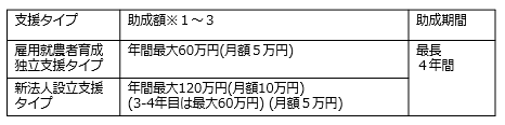 ※4)雇用就農者育成・独立支援タイプは1経営体当たりの新規採択人数は年間5人まで、かつ3人目以降の助成額は年間最大20万円となります。