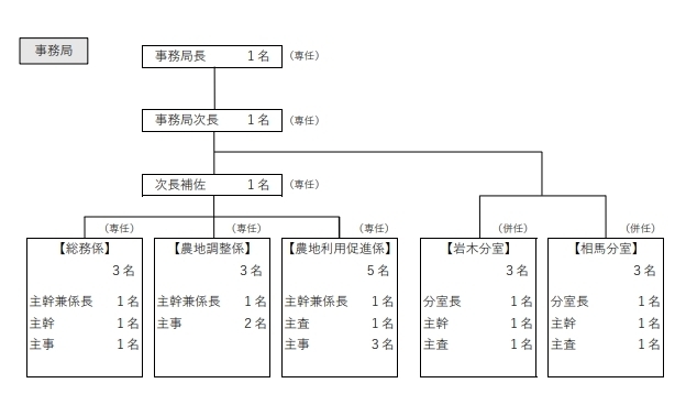事務局は専任職員14人と併任職員6人の合計20人からなり、その体制は次のとおりです。