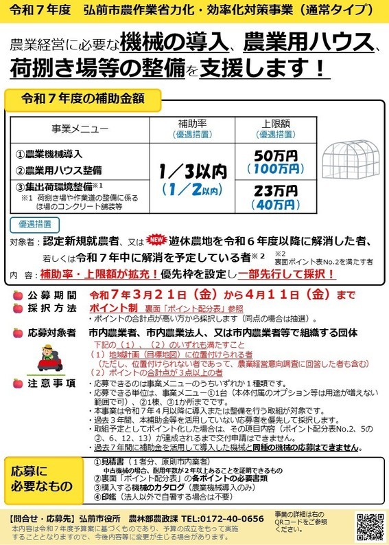 ア:弘前市農作業省力化・効率化対策事業(本事業)