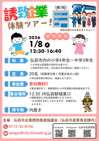 弘前市では、地域経済の活性化、雇用の創出などの経済活動をはじめ、人口減少の抑制や移住・定住促進への効果を期待し、主に首都圏の企業に対して「弘前工場」や「弘前事業所」を開設してもらうための「企業誘致活動」を行っています。