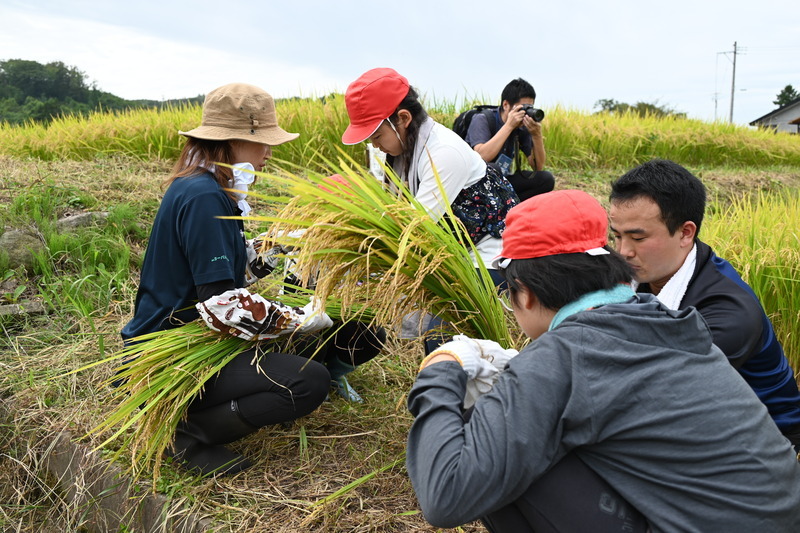 相馬小の地域コーディネータの田澤さんの田んぼで、田植えから稲刈りを体験しています。