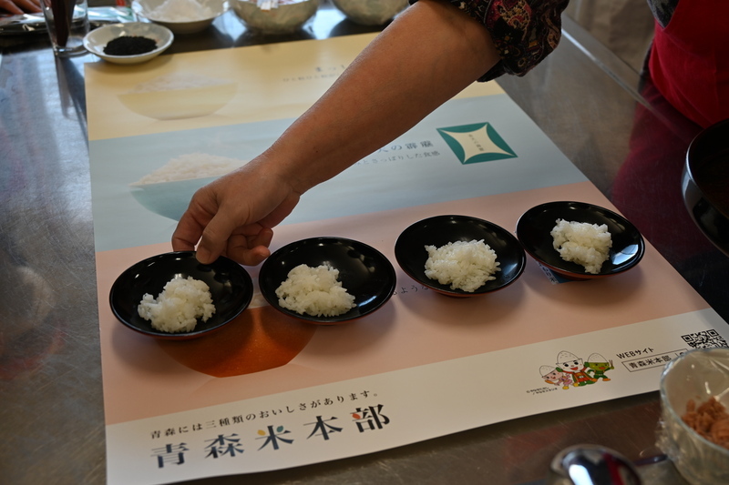 また、「青天の霹靂」のほかに「はれわたり」「まっしぐら」といった計3種類の県産米の食べ比べもしました。