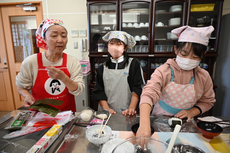 12月10日、弘前市立相馬小学校5年生は自分たちで収穫した「青天の霹靂」をはじめとした県産米をつかって、おにぎり作りをしました。