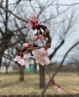 雪解けもどんどん進み、弘前市内の十月桜もかわいらしく咲いています。