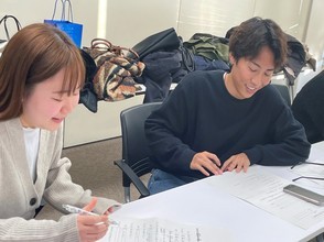 穴埋め式の台本をもとに、オリジナルの漫才を参加者同士で披露し合いました。