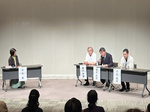 「太宰」をテーマにした戯曲を公演したことがある笑い飯の哲夫さんと、太宰治とゆかりのある芥川龍之介の息子が校歌を作曲した弘前南高校の視聴覚部によるトークショーを実施しました。