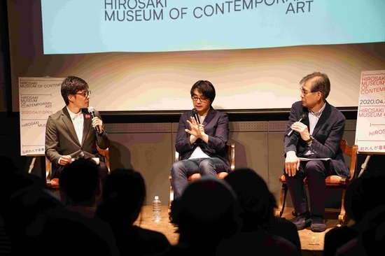 事業者の弘前芸術創造株式会社は、令和元年7月14日、スペース・デネガで開館記念イベントを開催し、弘前れんが倉庫美術館が来年4月11日に開館することや美術館のロゴマークについて発表したほか、ロゴマークをデザインしたアートディレクタの服部一成氏、森美術館館長で総合アドバイザーの南條史生氏、NPO法人harappaの小杉在良氏が新たな美術館の目指すべき方向性などについて述べました。