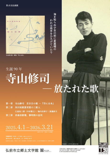 寺山修司は、昭和10年に弘前市に生まれ、今年が生誕90年にあたります。この節目の年に、寺山によって〈放たれた歌〉の意義を浮き彫りにします。