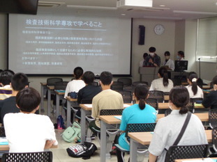「看護学専攻」・「作業療法学専攻」・「放射線技術科学専攻」・「検査技術科学専攻」・「心理支援科学科」・「理学療法学専攻」の6ブースからなる、施設視察や実習体験を行いました。