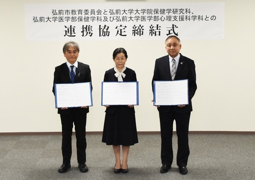 ◆令和4年5月27日、「弘前市教育委員会と弘前大学大学院保健学研究科、弘前大学医学部保健学科及び弘前大学医学部心理支援科学科との連携に関する協定書」を締結いたしました。