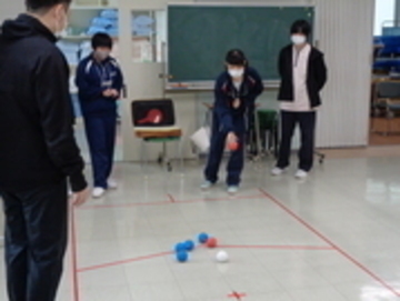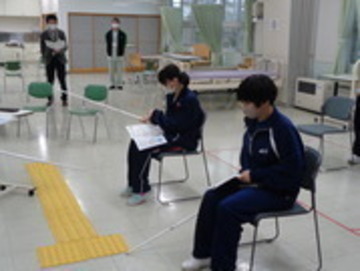 「介護について学ぼう」では、座学で介護の基本について学んだ後、みんなが楽しめるレクリエーションとして、簡単なゲームやボッチャを行いました。また、着脱介助について体験した後、白杖と点字ブロックを使用して障がいの疑似体験を学ぶことで介護福祉について理解を深めました。