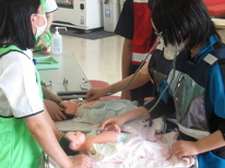 人形を使って呼吸を助ける気管挿管を体験