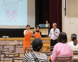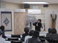 りんごジュースのパッケージを例にしたターゲットマーケティングの手法、炊飯器、蛇口、温水洗浄便座に見られるユニバーサルデザインの思想、日本刀、あけびづる細工、伝統工芸品等に関するデザインのおもしろ雑学が石川先生のユーモアあふれる語りで展開され、参加者のみなさんは熱心に聞き入っていました。