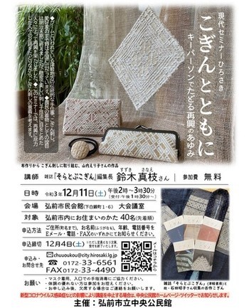 11月「現代セミナー特別編」 12月「耳で聴く新・弘前人物志~文化を発展させた人物~」 2月「耳で聴く新・弘前人物志~産業を発展させた人物~」 |