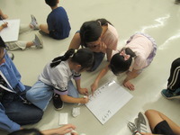「はじめまして会」と題して、各自の名札や班ごとの名簿作りや前回に続き、交流をメインとしたゲームなどを行いました。