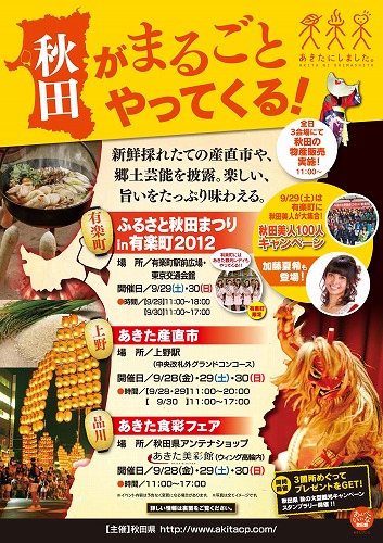 9月29日、30日、東京有楽町において、観光キャンペーン「ふるさと秋田まつりin有楽町2012」が行われます。