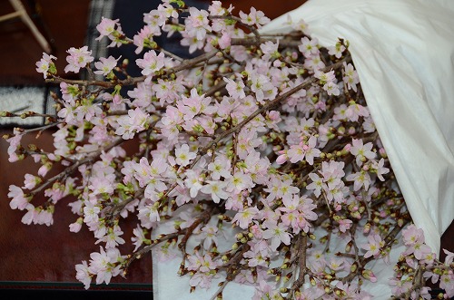 鮮やかな『啓翁桜(けいおうざくら)』が、JAつがる弘前より贈呈されました。 『啓翁桜』は「冬のサクラ」として人気で、通常は3月下旬から4月上旬にかけて開花するところ、促成室で2週間程度温度処理をして開花させ、関東を中心に12月下旬~3月上旬まで出荷されています。