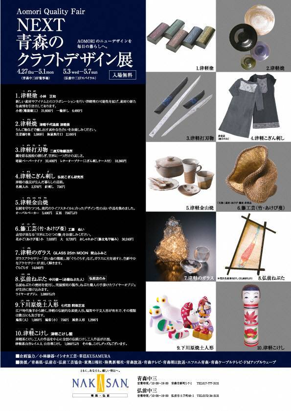 今回、青森県の伝統工芸品の新しい魅力を広くアピールするため、青森中三と弘前中三で、~AOMORI Quality Fair~NEXT アオモリのクラフトデザイン展が開催されます。
