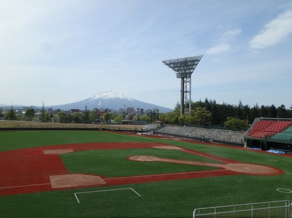 岩木山をイメージした三角型のメインスタンドや人工芝などが整備され、県内最大級の球場として生まれ変わりました。