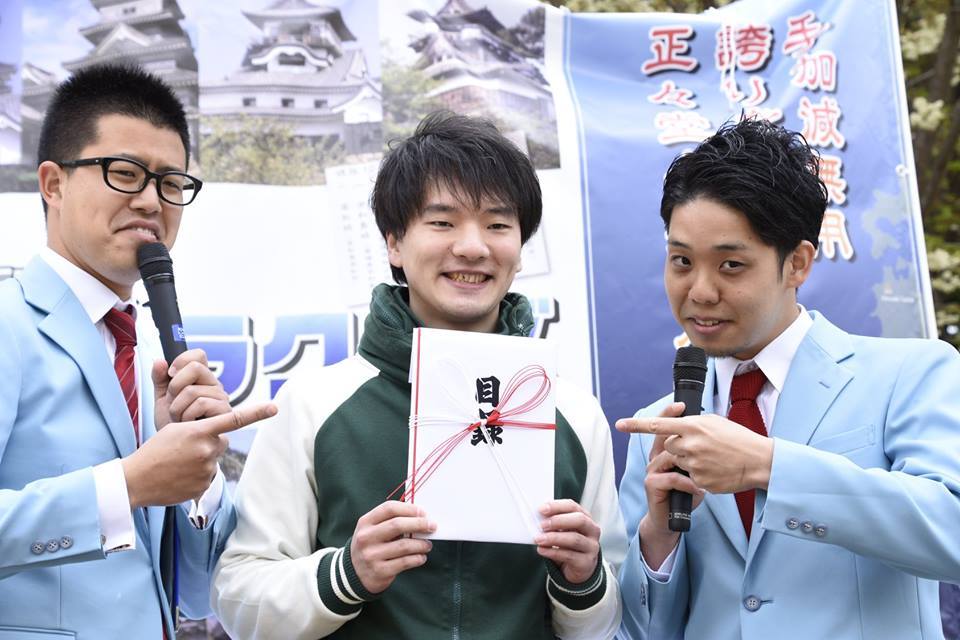予選・準決勝を勝ち抜いた5名が、決勝戦に早押し問題に参加。見事勝ち抜いた優勝者に、坂井市・丸岡城への旅行券が進呈されました!