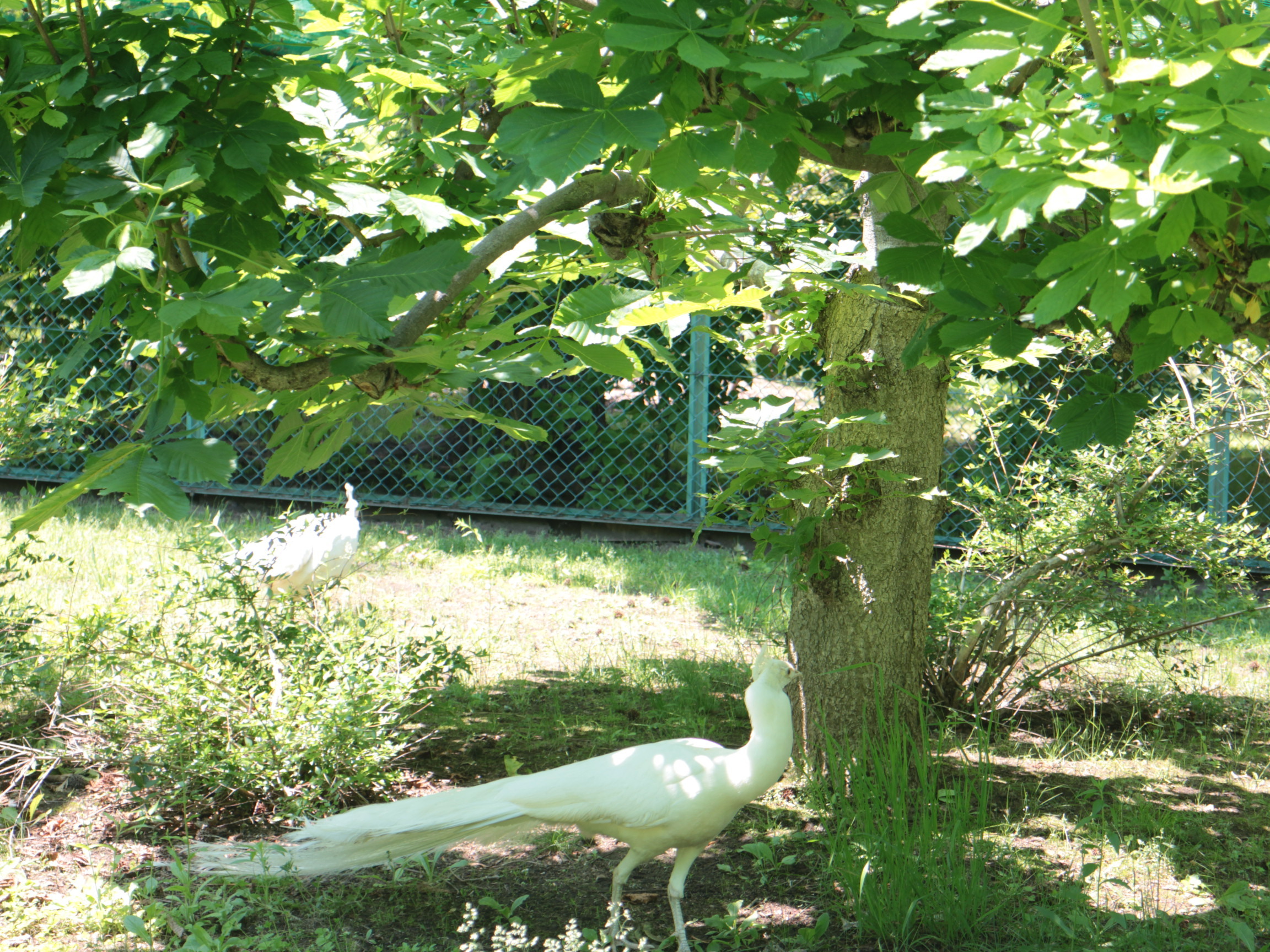 今年も弥生いこいの広場から弘前城植物園にやってきました。シロクジャクの「つぶあん(オス)」と「こしあん(メス)」。名前の由来は不明ですが、とても人懐っこい性格で大人気です。