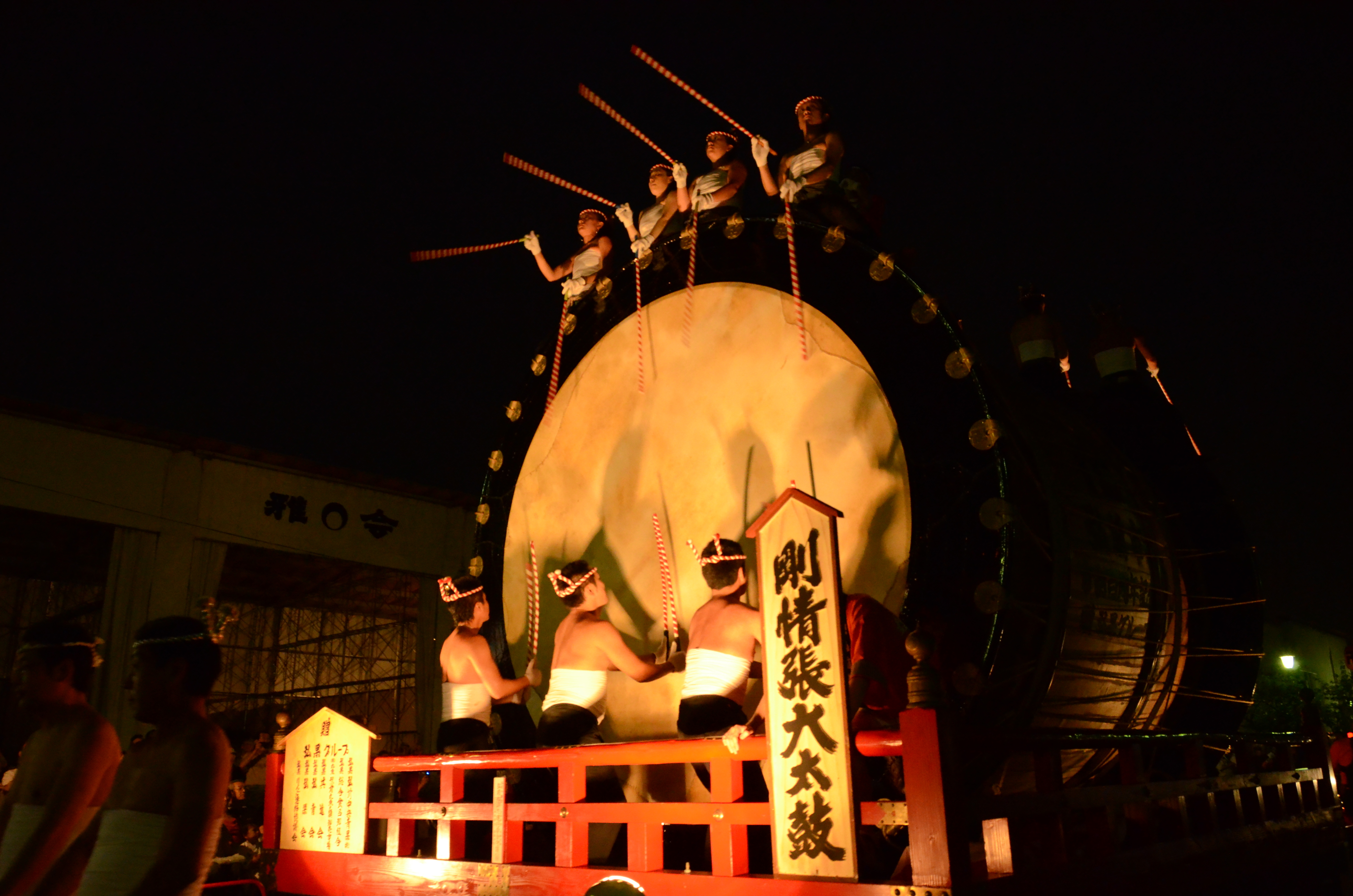 直径4メートル、50人がかりで引く大太鼓の迫力ある音をお楽しみに!