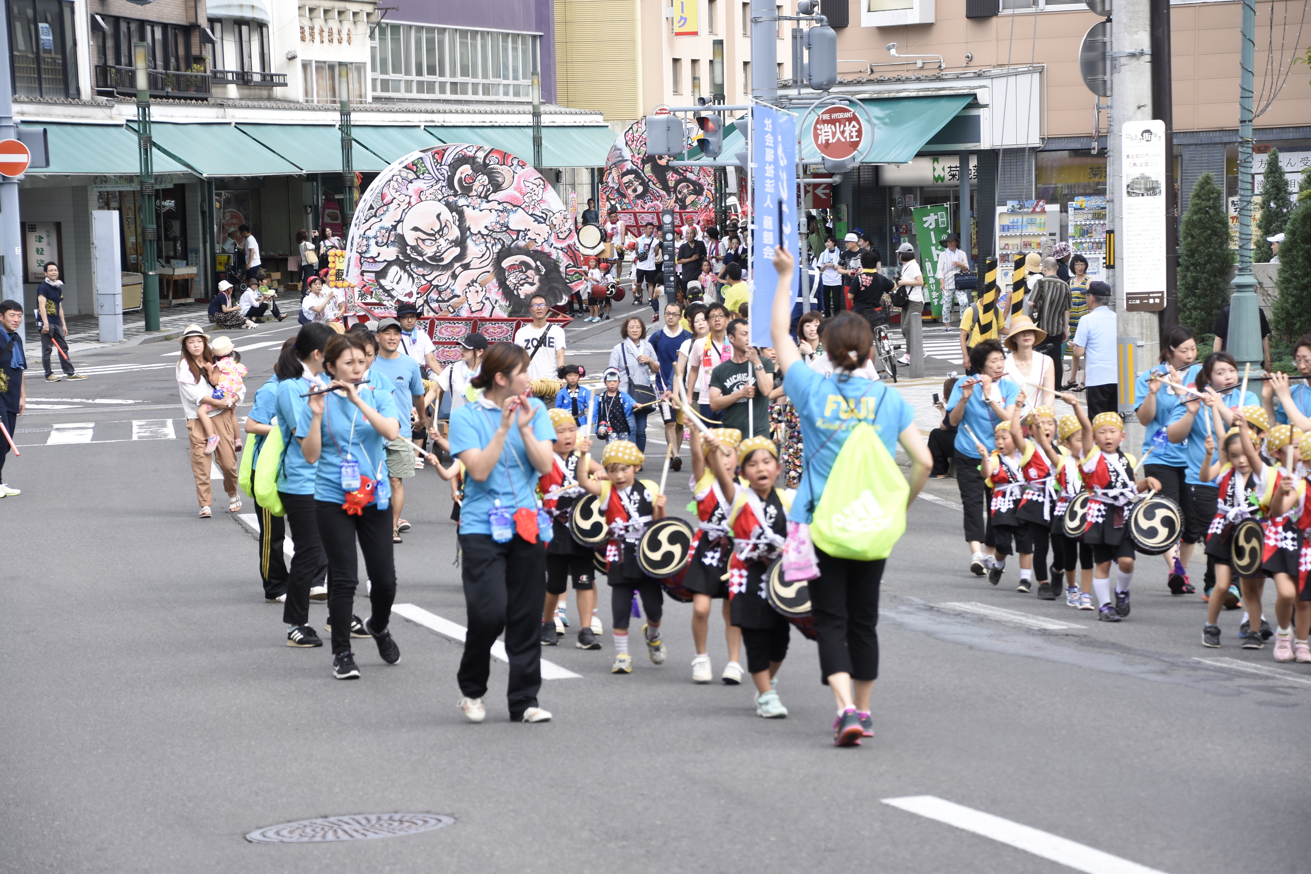 7月29日(日)、弘前ねぷたまつりのオープニングとして、市内の幼稚園・保育園による「ちびっ子ねぷたのお通りだい」が開催され、パレードコースの土手町には、子どもたちの「ヤーヤドー」の掛け声やお囃子が響きわたりました。